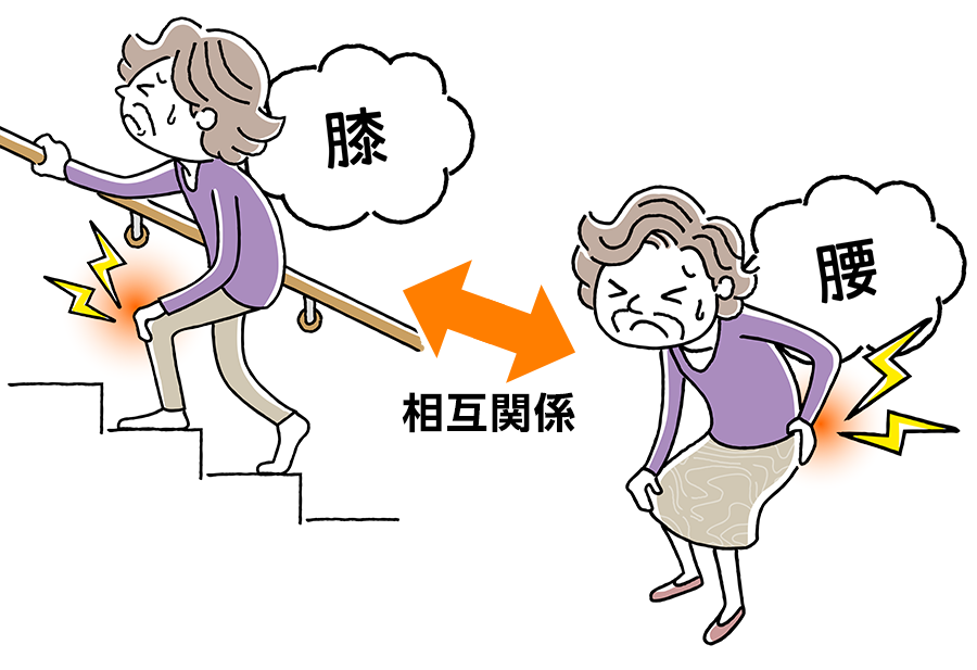 さらに「膝をかばっていたら腰も(逆も然り)」なんてことも少なくありません。